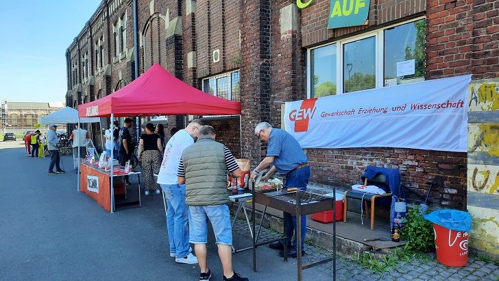 Auch die GEW KV Wesel war mit dabei bei dieser rundum gelungenen Veranstaltung. Nur noch 50 % der ArbeitnehmerInnen haben einen Tarifvertrag, d.h. zunehmend immer mehr haben schlechtere Vergütung und Arbeitsbedingungen. Im neuen Koalitionsvertrag plant die Bundesregierung eine Flexibilisierung des Arbeitszeitgesetzes. Diesem Plan werden DGB und Gewerkschaften nicht zustimmen, sondern für den Erhalt des Arbeitszeitgesetzes wie bis dato kämpfen. Denn dies dient der Erholung und der Gesundheit aller ArbeitnehmerInnen. Eine Flexibilisierung würde de facto eine Erhöhung der Arbeitszeit mit sich bringen, die ohnehin schon gerade in vielen Betrieben vor allem ohne Tarifverträgen gegeben sind.